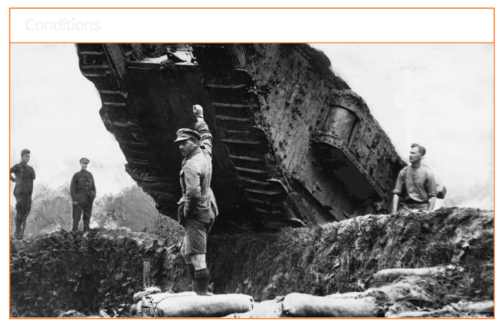 Examining WW1 Archival footage, researching clothing, equipment, vehicles, weapons,