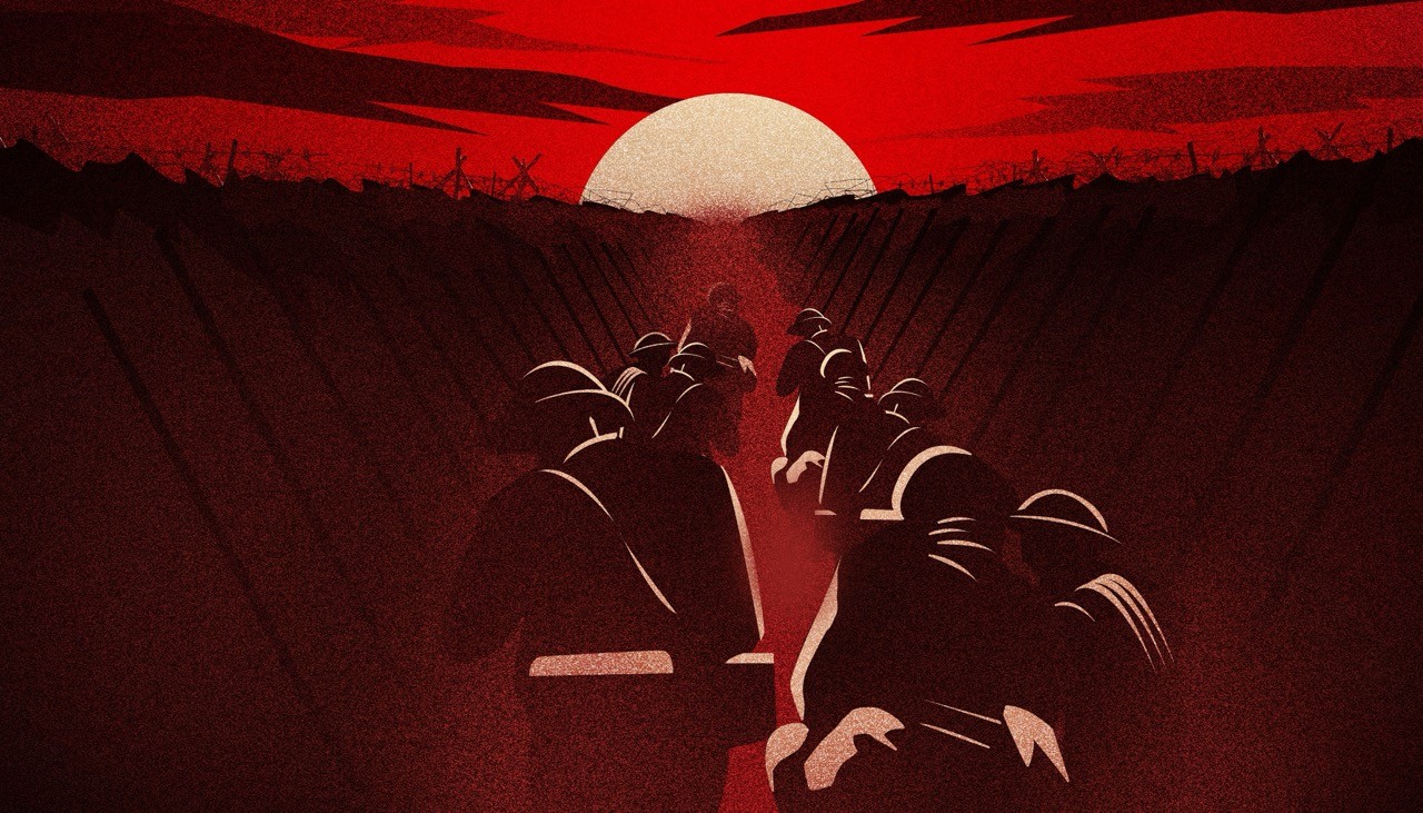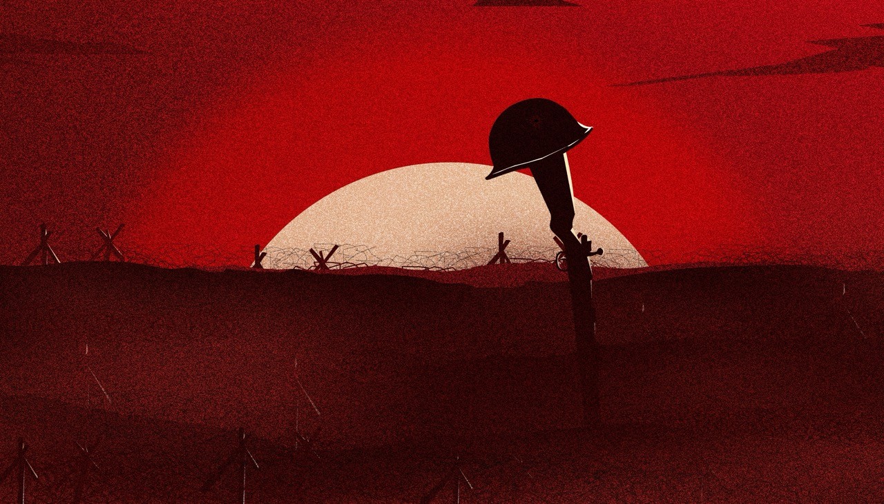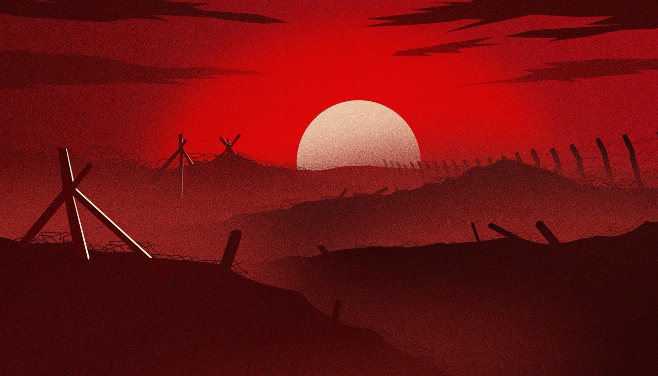 In order to heavily emphasize the brutal nature of the war and the man-made horrors that were inflicted, I opted to go with a flat vector art style, color palette consisting of reds, off-white tones, black.